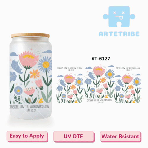 16oz uvdtf CONSIDER HOW THE WILDFLOWERS GROW Macaron color pink blue daisy Boho--#T-6127
