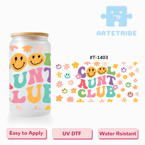 16oz uvdtf COOL AUNT CLUB Macaron color flower smilely face--#T-1403