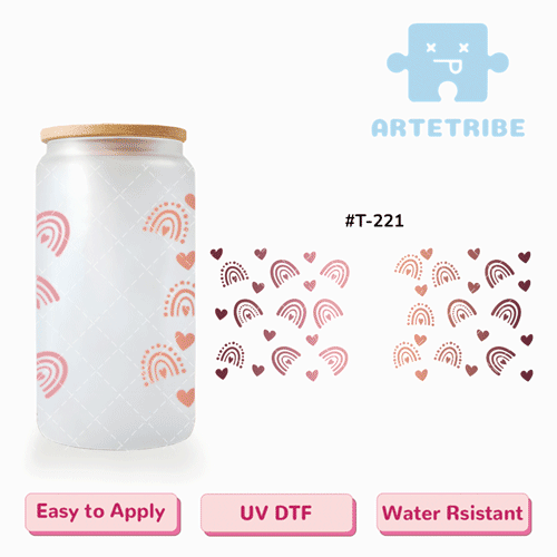 16oz uvdtf colorful hearts pink green yellow red--#T-324