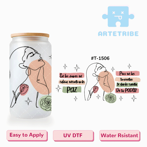 16oz uvdtf beautiful girl rose flower Boho--#T-1506