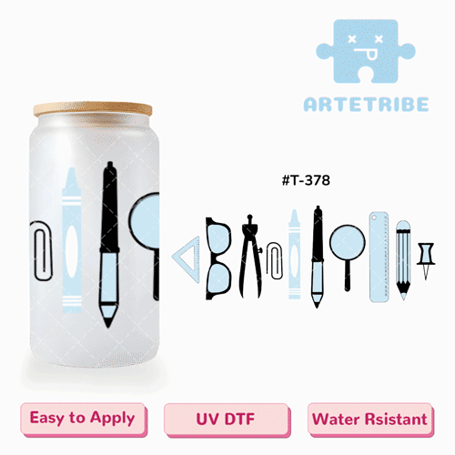 16oz uvdtf Teachers' Day educate stationery ruler glasses Compasses paper clip crayon pen magnifier pencil pin--#T-378