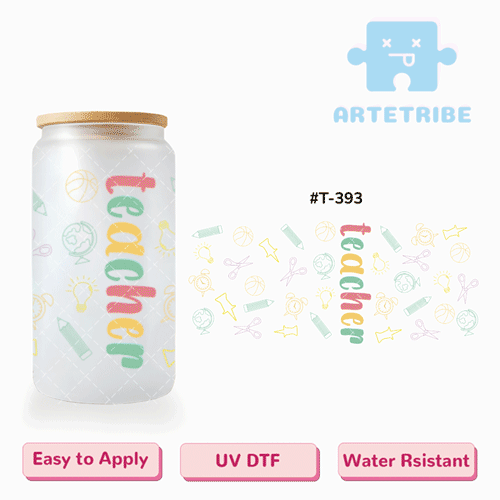 16oz uvdtf Teachers' Day Best Teacher Ever Macaron color purple pink blue red flower rainbow heart-#T-365