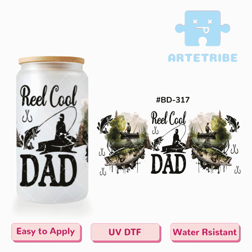 16oz uvdtf Father's Day FISHING DAD Reel Cool--#BD-317