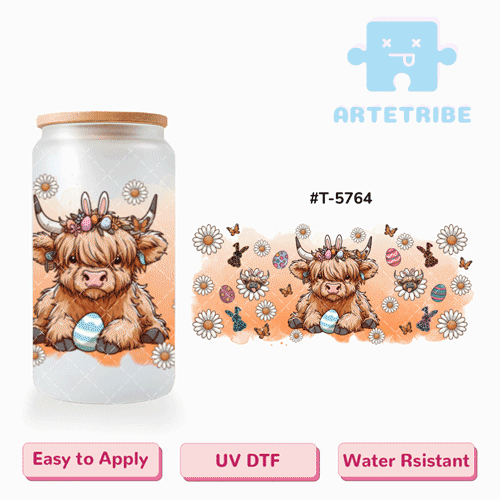 16oz uvdtf Easter cow daisy egg-- #T-5755