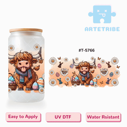 16oz uvdtf Easter cow daisy egg-- #T-5766