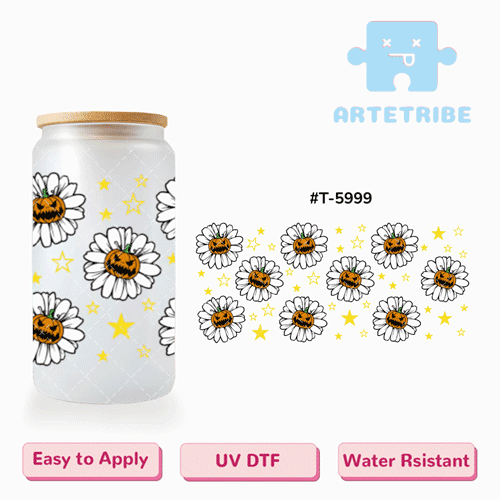 16oz uvdtf Halloween Jack-o'-Lantern pumpkin daisy star flower Boho--#T-5999