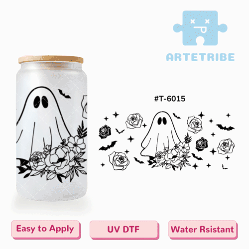 16oz uvdtf Halloween ghost rose flower bat black Boho--#T-6015