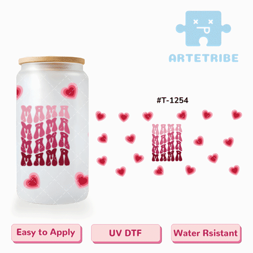 16oz uvdtf Mother's Day mama heart pink gradient Boho--#T-1254