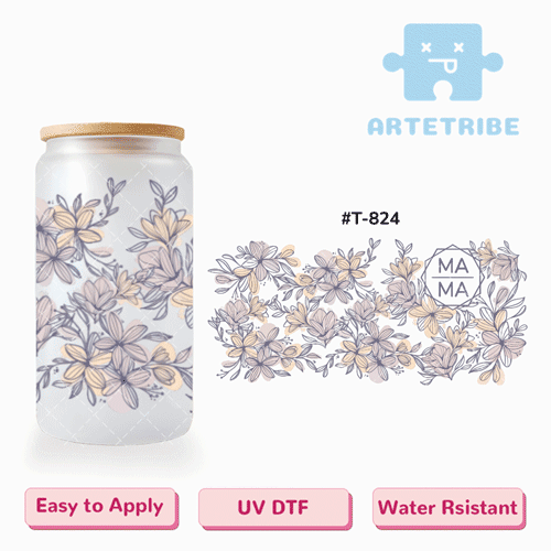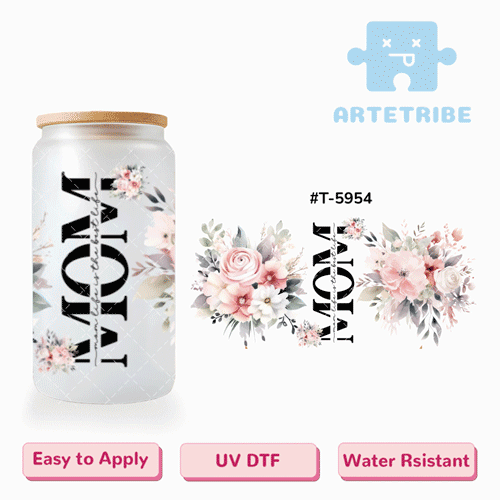 16oz uvdtf Mother's Day mama VIBES flower floral pattern Boho--#T-1256