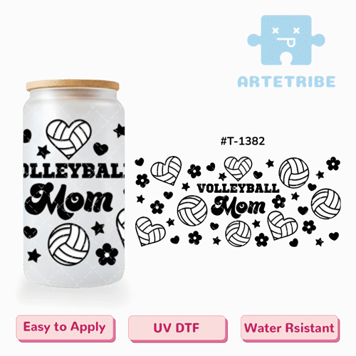 16oz uvdtf Mother's Day sports volleyball mom black tone--#T-1382