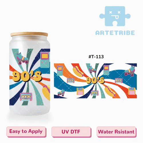 16oz uvdtf 90's Game consoles, hot dogs, hard drives, cassettes, roller skates 2D cartoon--#T-113