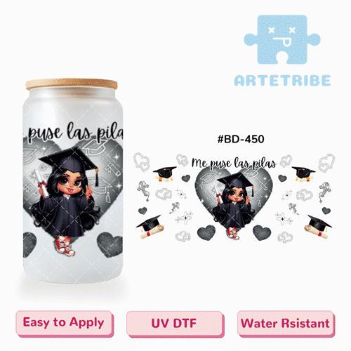 16oz uvdtf Graduation Time Bachelor diploma girl balck heart cross--#BD-450