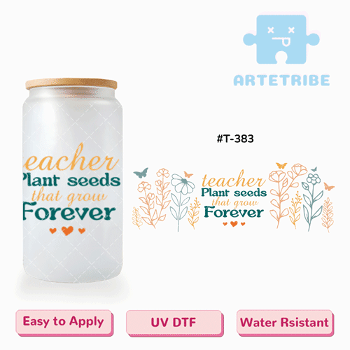 16oz uvdtf Teachers’ Day teacher Plant seeds that grow Forever orange green floral pattern butterfly Boho--#T-383
