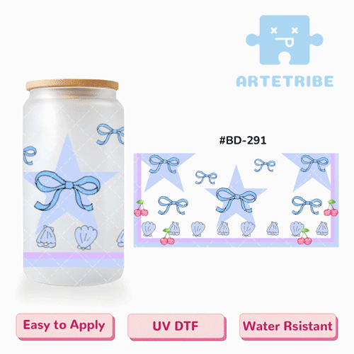 16oz uvdtf blue purple tone bow star cherry shell--#BD-291
