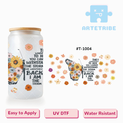 16oz uvdtf TRUST YOUR VISIONS butterfly daisy flower colorful Boho--#T-6085
