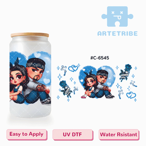 16oz uvdtf Valentina's Day girl boy bule rose cross heart shining star--#C-6545