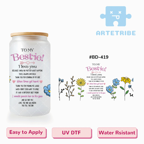 16oz uvdtf to my bestie I love you when times get hard I would punch her in the face Boho--#BD-419