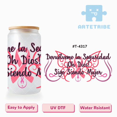 16oz uvdtf World AIDS Day pink tone butterfly ribbon--#T-4317