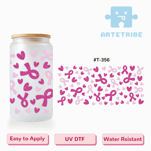 16oz uvdtf World AIDS Day pink tone In October we wear pink stronger together pumpkin ribbon--#T-1199