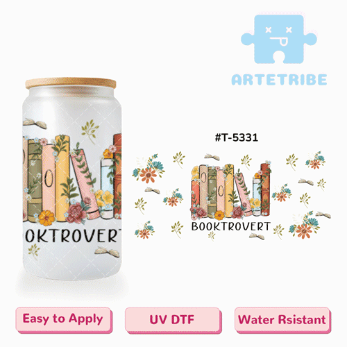 16oz uvdtf World Book and Copyright Day BOOKTROVERT floral pattern flowers Boho--#T-5331