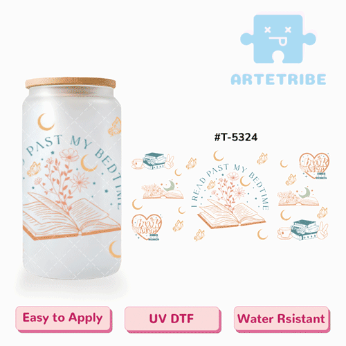 16oz uvdtf World Book and Copyright Day I READ PAST MY BED TIME flowers grow in the book orange tone Boho--#T-5324