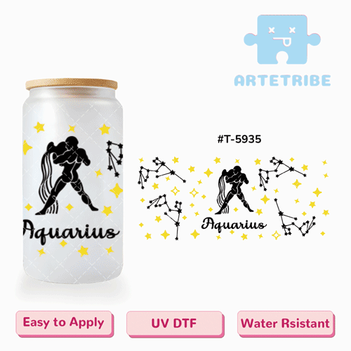 16oz uvdtf Zodiac Aquarius black gold tone--#T-5935