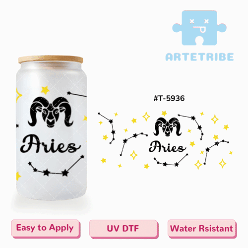 16oz uvdtf Zodiac Aries black gold tone--#T-5936