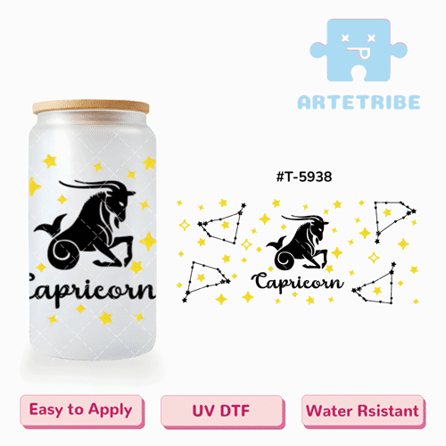 16oz uvdtf Zodiac Capricorn black gold tone--#T-5938