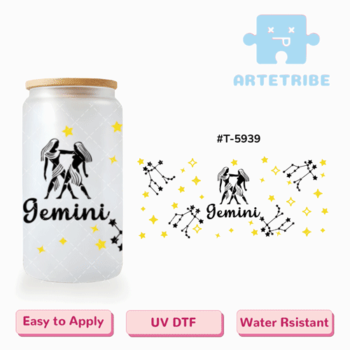16oz uvdtf Zodiac Gemini black gold tone--#T-5939