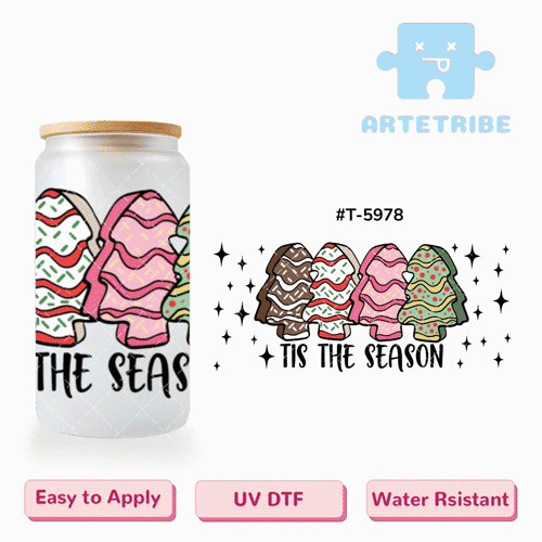 16oz uvdtf Merry Christmas TIS THE SEASON gingerbread pine Boho--#T-5978