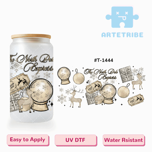 16oz uvdtf Merry Christmas gold crystal ball deer snow flake gift Boho--#T-1444