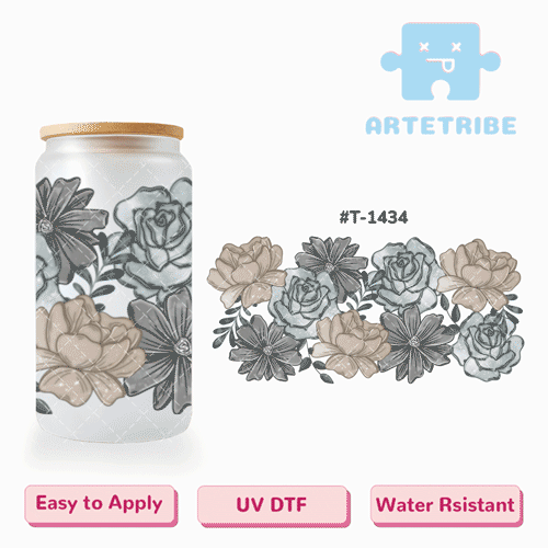 16oz uvdtf colorful flower water color Boho--#T-1439