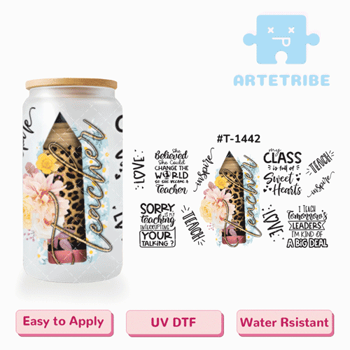16oz uvdtf Teachers' Day pencil with flowers encourageous quotes--#T-1442