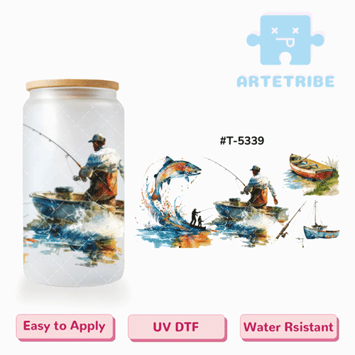 16oz uvdtf FISHING DAY fishing man boat fishing gear rod--#T-5339