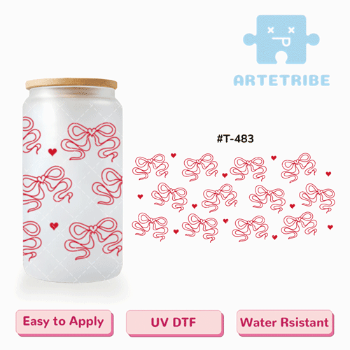 16oz uvdtf red hollow bow heart--#T-483