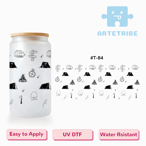 16oz uvdtf pen drawing camping elements Boho--#T-84