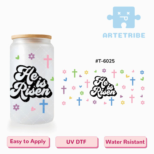 16oz uvdtf He is Risen cross heart flower colorful Boho--#T-6025