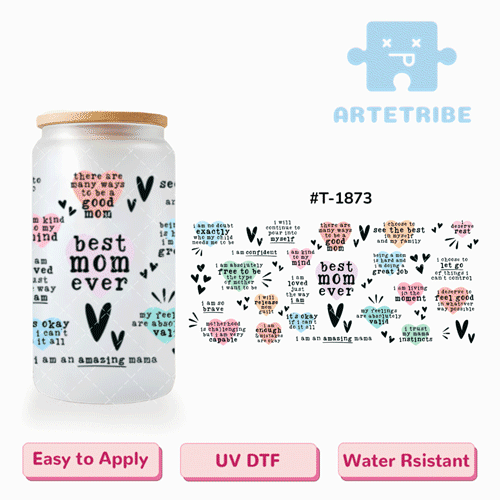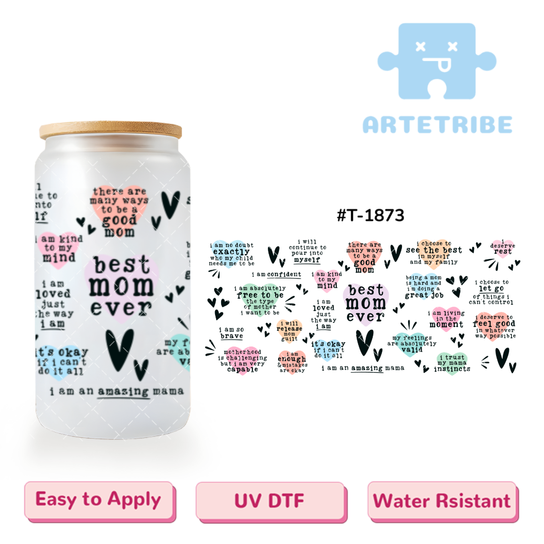 16oz uvdtf Mother's Day best mom ever I am an amazing mama colorful heart Macaron color--#T-1873