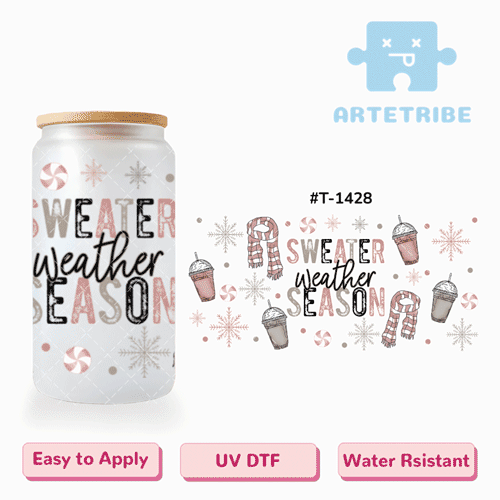 16oz uvdtf WINTER snowman snow flake blue pink tone Boho--#T-1422
