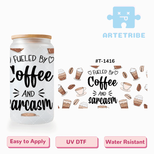 16oz uvdtf fueled by Coffee AND sarcasm brown tone Boho--#T-1416
