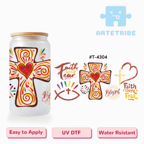 16oz uvdtf Faith Fear Faith over Fear cross brown yellow tone--#T-4304