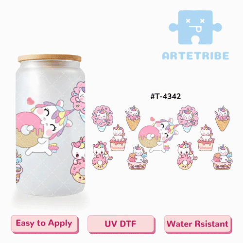 16oz uvdtf Rainbow Unicorn with sweet donut pink tone--#T-4338