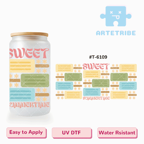16oz uvdtf SWEET SUMMERTIME Popsicles yellow green blue Boho--#T-6109