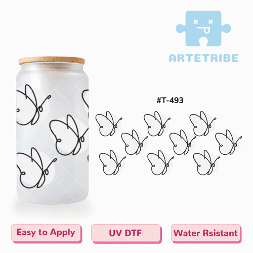 16oz uvdtf pen drawing butterfly gray Morandi simple style--#T-493