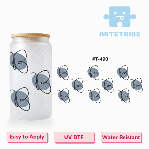 16oz uvdtf pen drawing butterfly gray blue Morandi simple style--#T-490