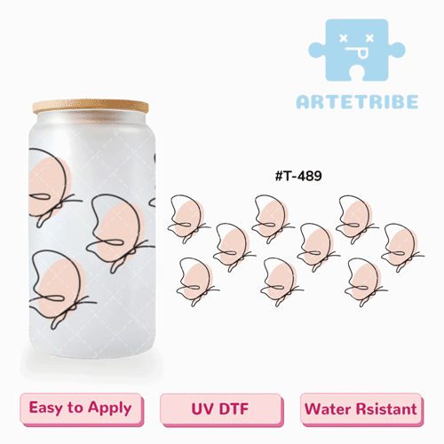 16oz uvdtf pen drawing butterfly light pink Morandi simple style--#T-489