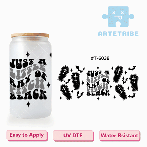 16oz uvdtf JUST A LITTLE RAY OF PITCH BLACK coffin cross bat Boho--#T-6038