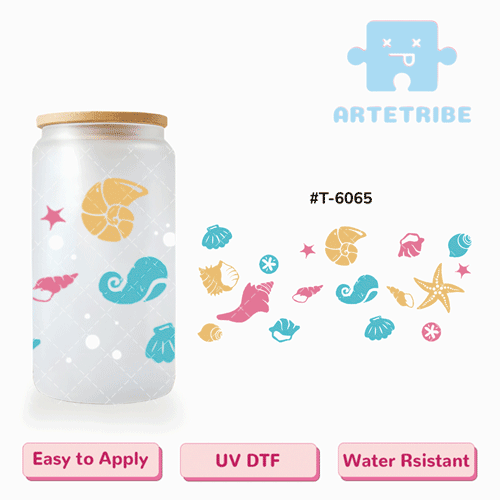 16oz uvdtf Ocean sea style shell conch star fish Macaron color Boho--#T-6065