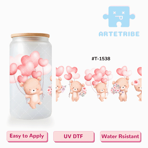16oz uvdtf Valentine's Day bears hearts--#T-1537