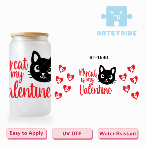16oz uvdtf Valentine's Day black cat--#T-1540